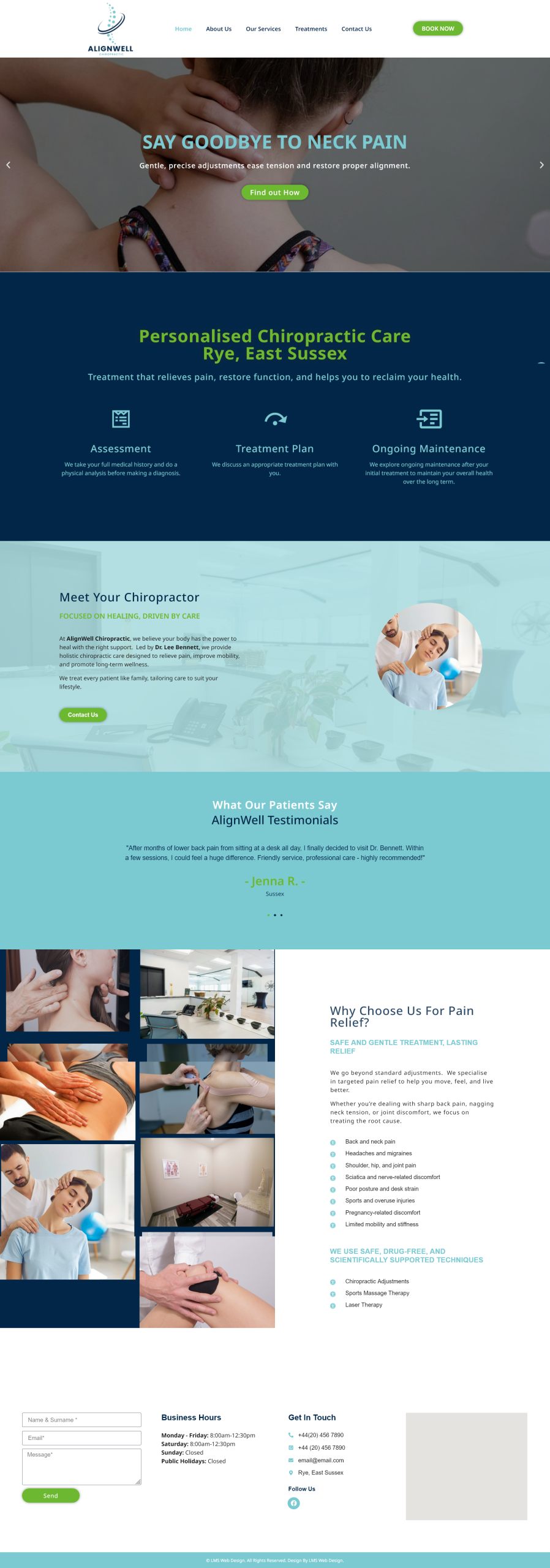 This professionally designed and brand-ready one-page website is ideal for chiropractors, physiotherapists, general practitioners, dental clinics, any health practioner, to establish an online presence quickly. Its clean, mobile-responsive design ensures that patients can access key information within minutes.